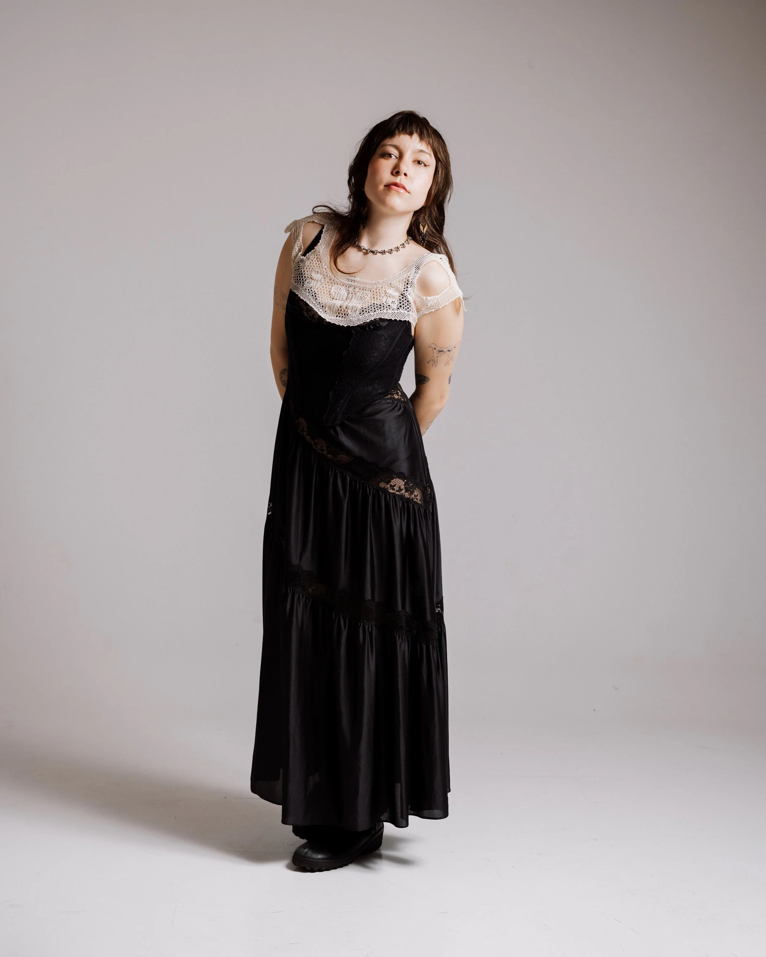 “Currently, I'm really honing into the colorless lace, vintage shapes. I'm looking back to theater, at the 40s, and theater. I grew up as a theater kid for a portion of my life and remember going into the costume room and admiring the history of clothes. I think that's mostly where I get my style and influence from.”