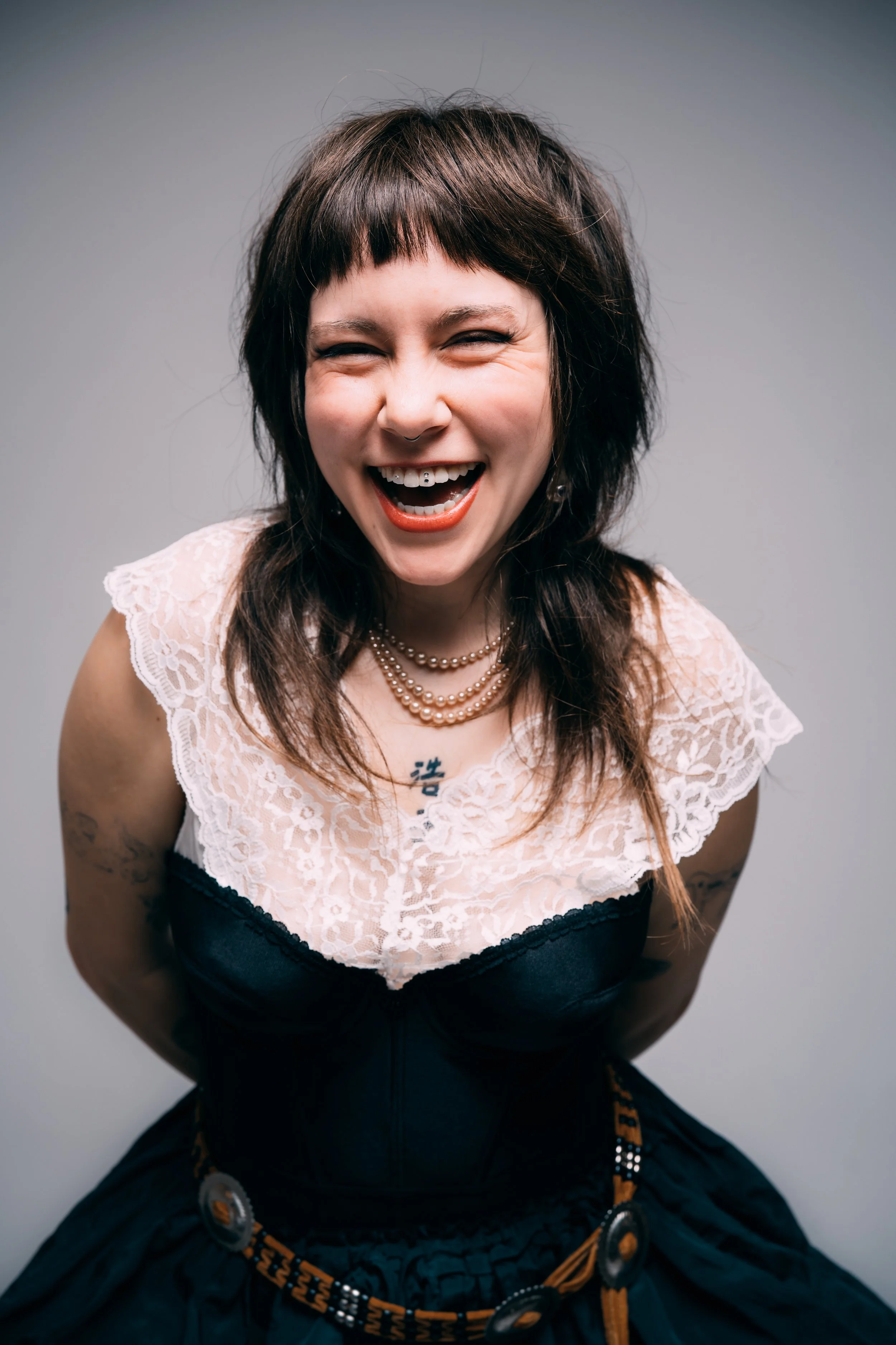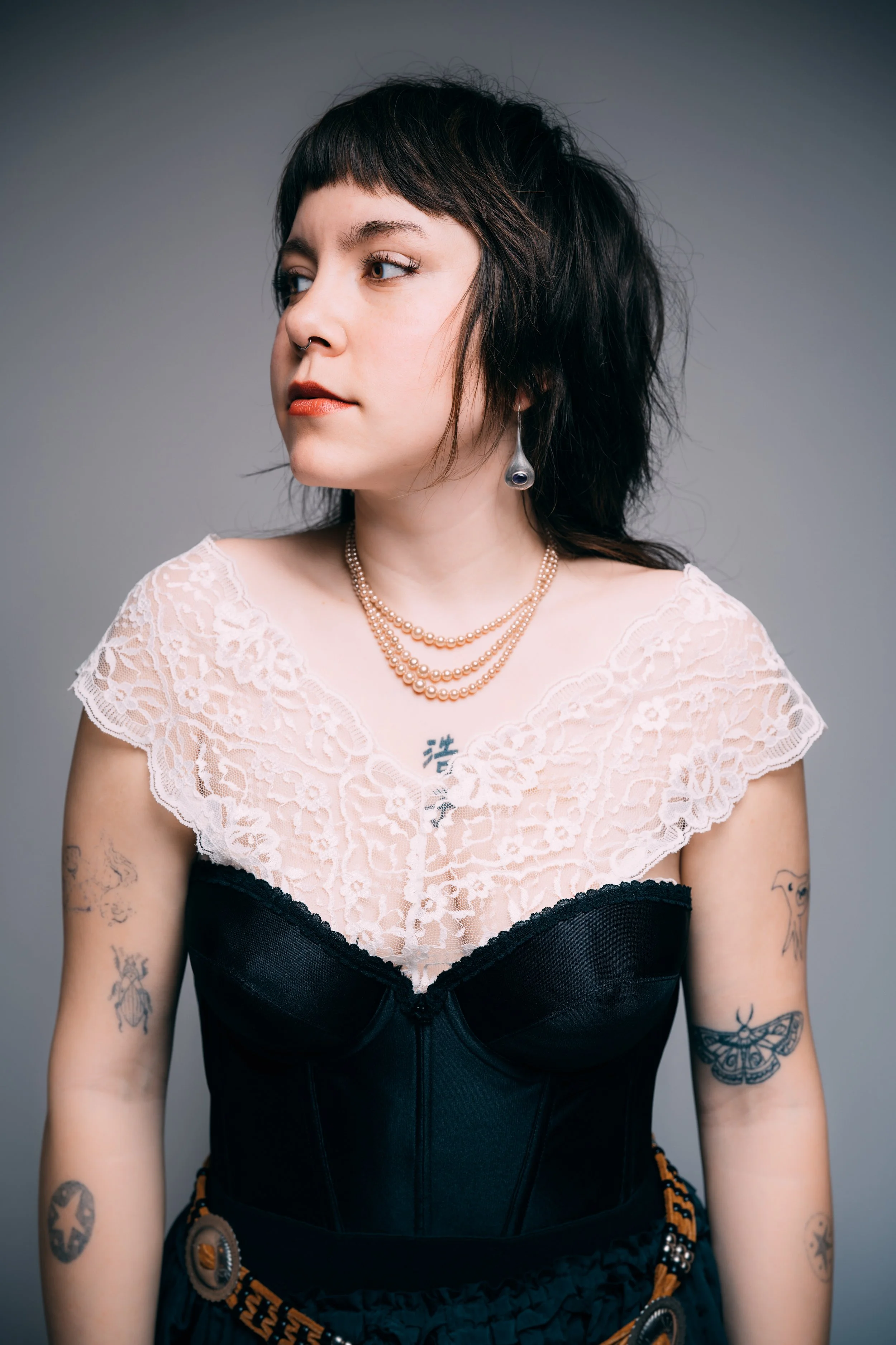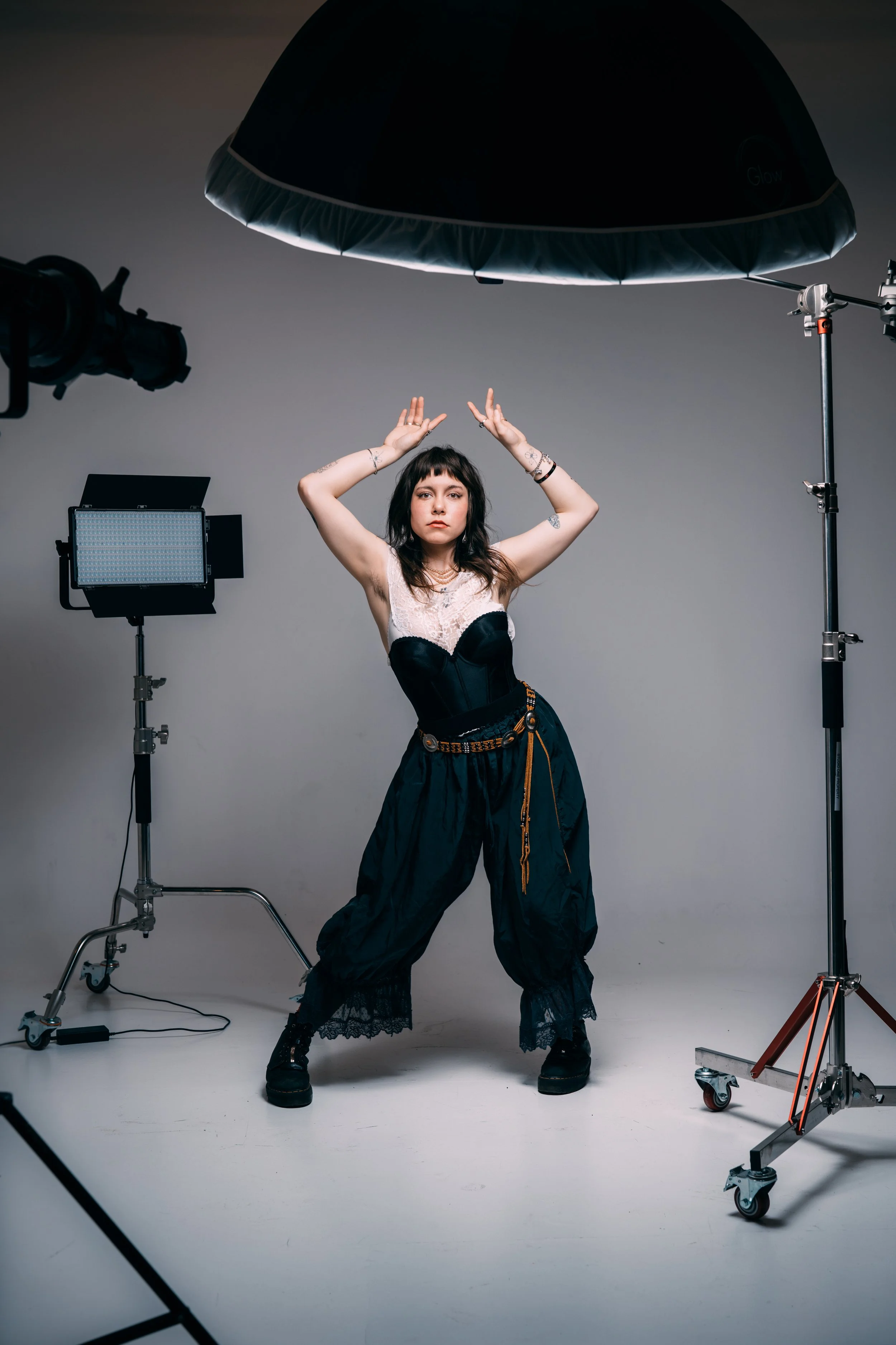 Moving to the Twin Cities expanded her perspective even more. Minneapolis offered more access, more inspiration, and more freedom to experiment. Where Duluth shaped her sense of texture and restraint, the cities opened up a broader range of references. Her style began to stretch into something more expressive, pulling in elements of grunge, art school aesthetics, and opening up her theatrical influences. Those influences are easy to trace. There’s a looseness and rawness that echoes artists like Nirvana or Patti Smith, balanced by a romantic edge that often feels closer to Courtney Love. At the same time, there’s an appreciation for structure and design that hints at more conceptual fashion influences. What makes it work is that none of these references feel copied. They’re absorbed and reinterpreted, filtered through her own instincts.